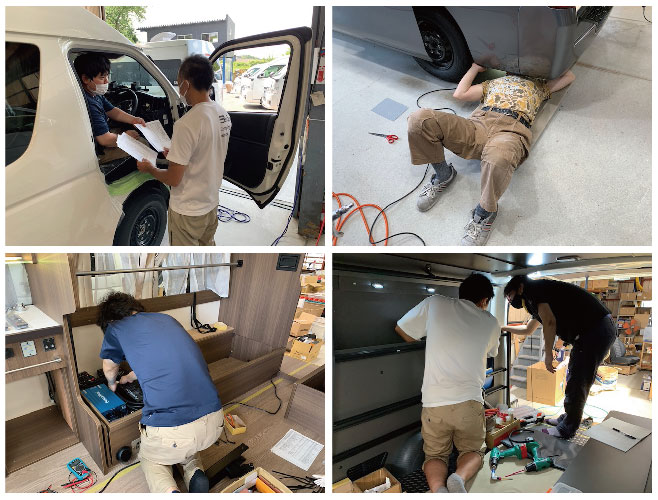 右上;下地作業、内張りパネル製作