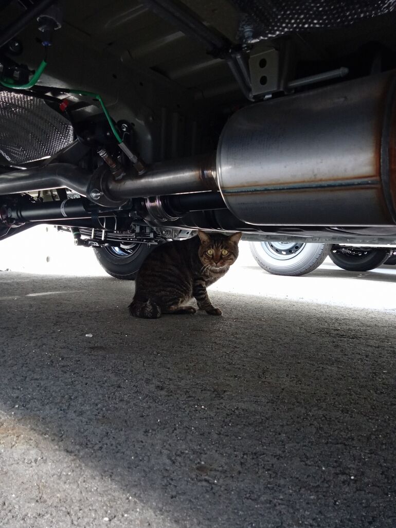 何か視線を感じるとだいたい奴が車の下から睨んでます。