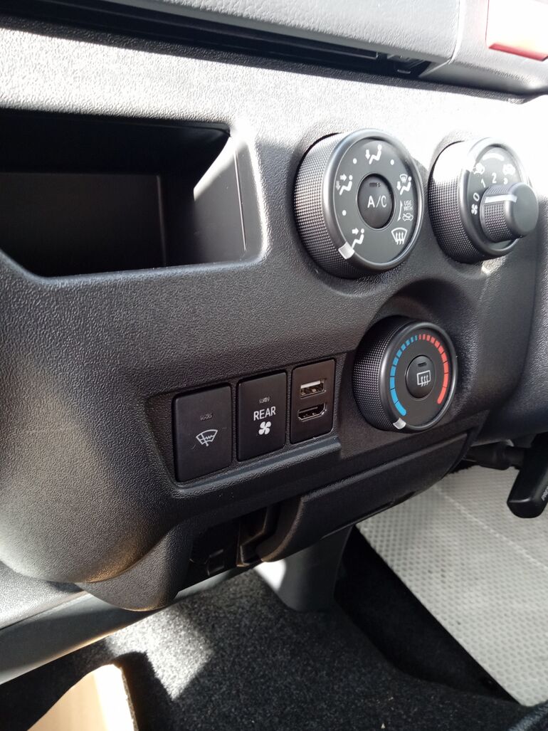 プラスLV、プラスLV+1、ソラン、ソランHユーザー様、写真のヒータースイッチ左側の未使用キャップを取って、「USBポート」を後付けする時、裏に使わないカプラが止めてあります。