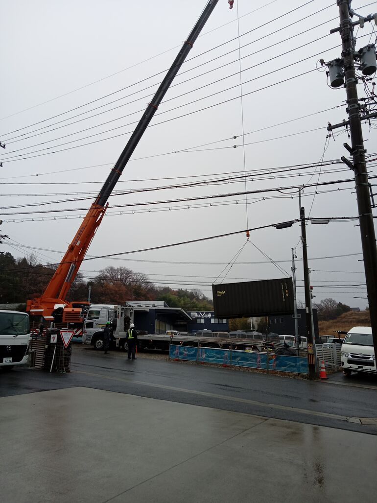 大型クレーンが来て準備、大変かなと思い見ているとすぐに持ち上がりすぐに終わった。