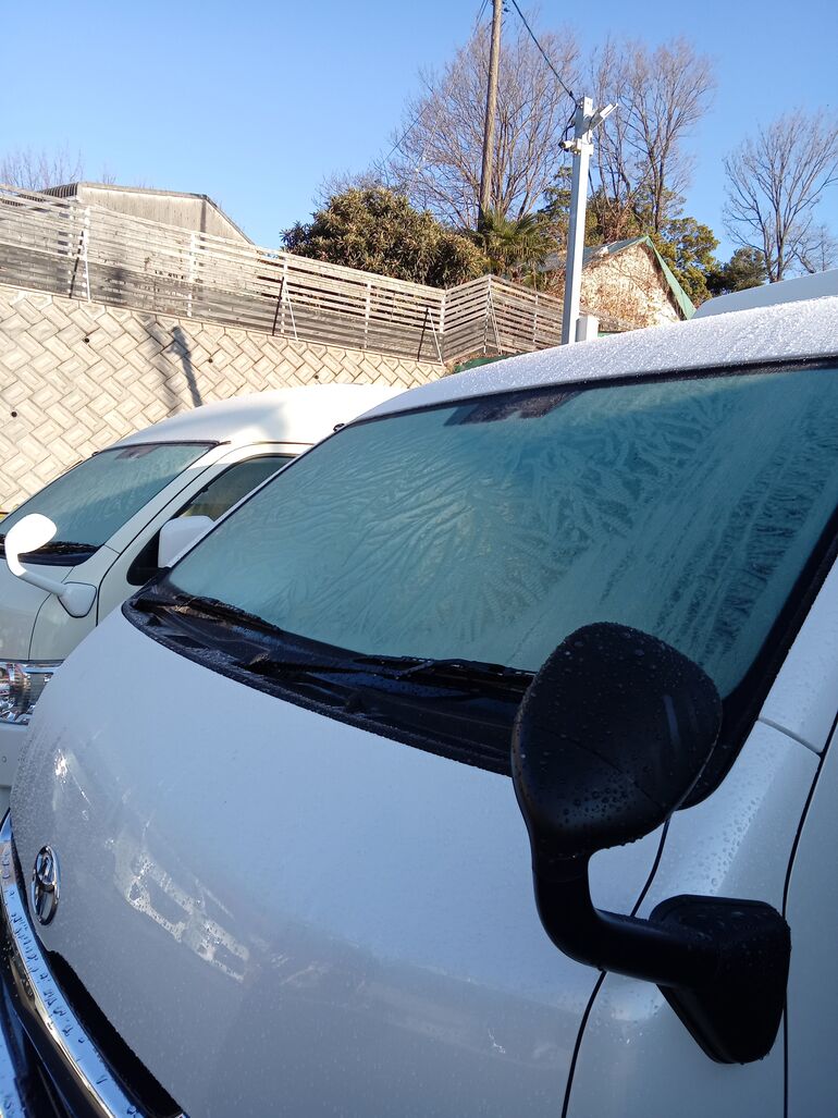今年も寒い朝から始まりました。フロントガラスには幾何学模様が。