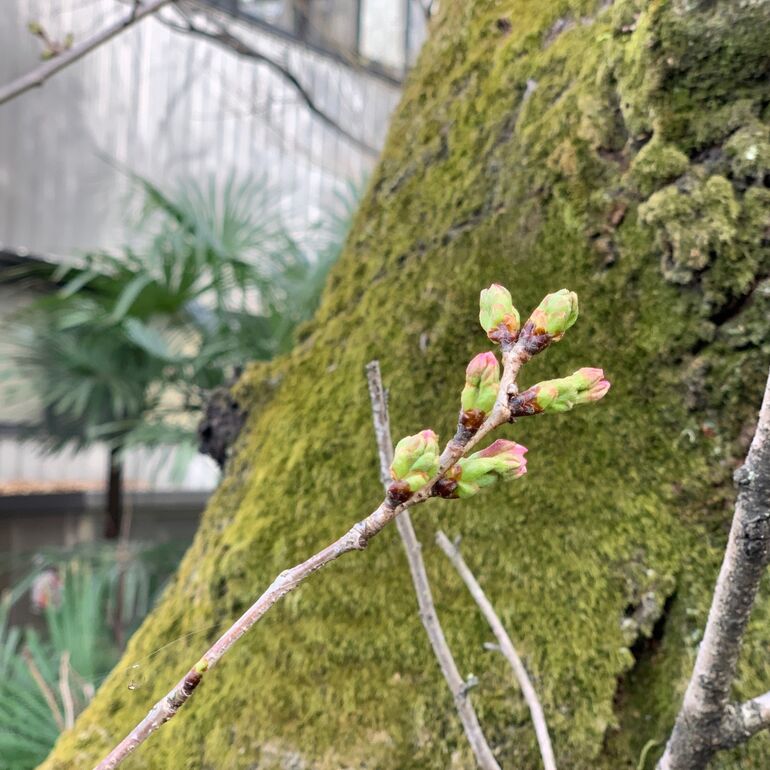 会社場内の桜はどうかと言うと、まだ開花はしていないが、蕾の先っぽはピンクだった。