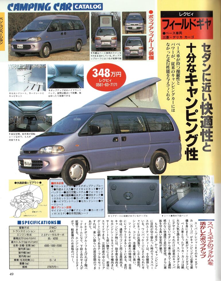 こちらは当時から乗用車範疇のキャンピングカーを、提供したいと画策したバンコンの「フィールドギヤ」です。