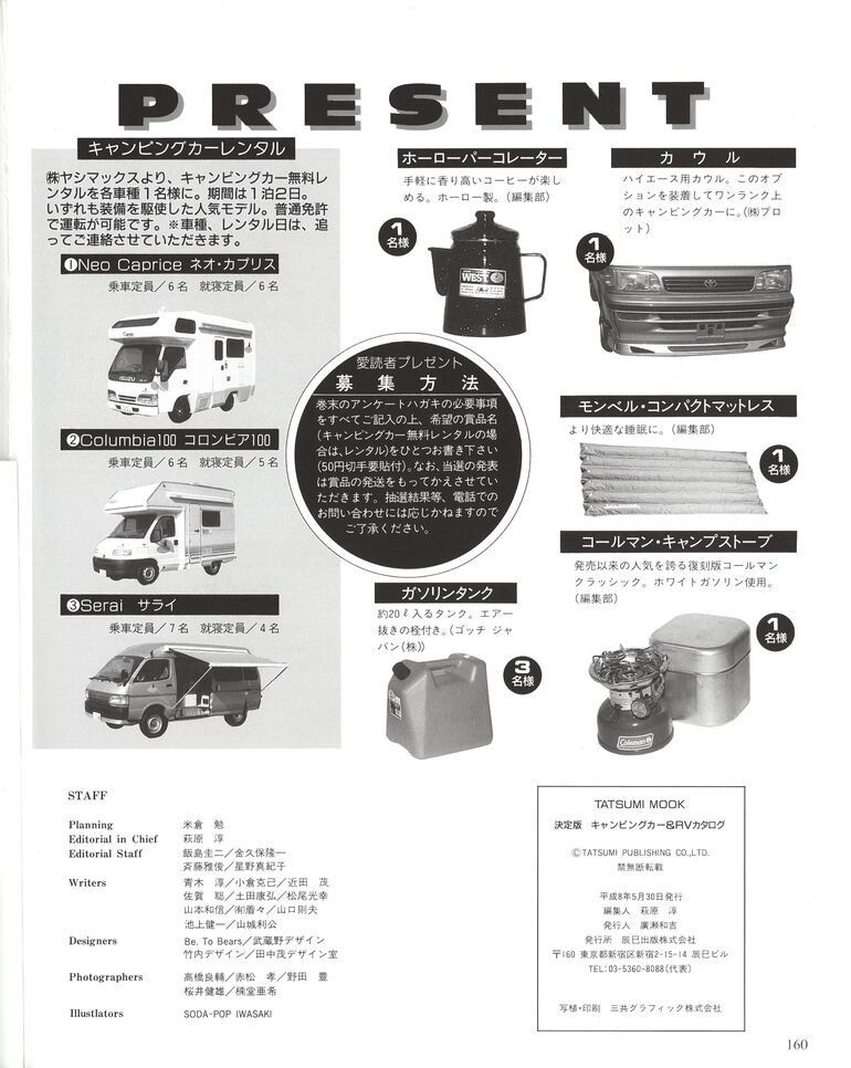 当時から「レンタルキャンピングカー」が存在し、読者の欲しがるプレゼント品に選ばれていたんですね。