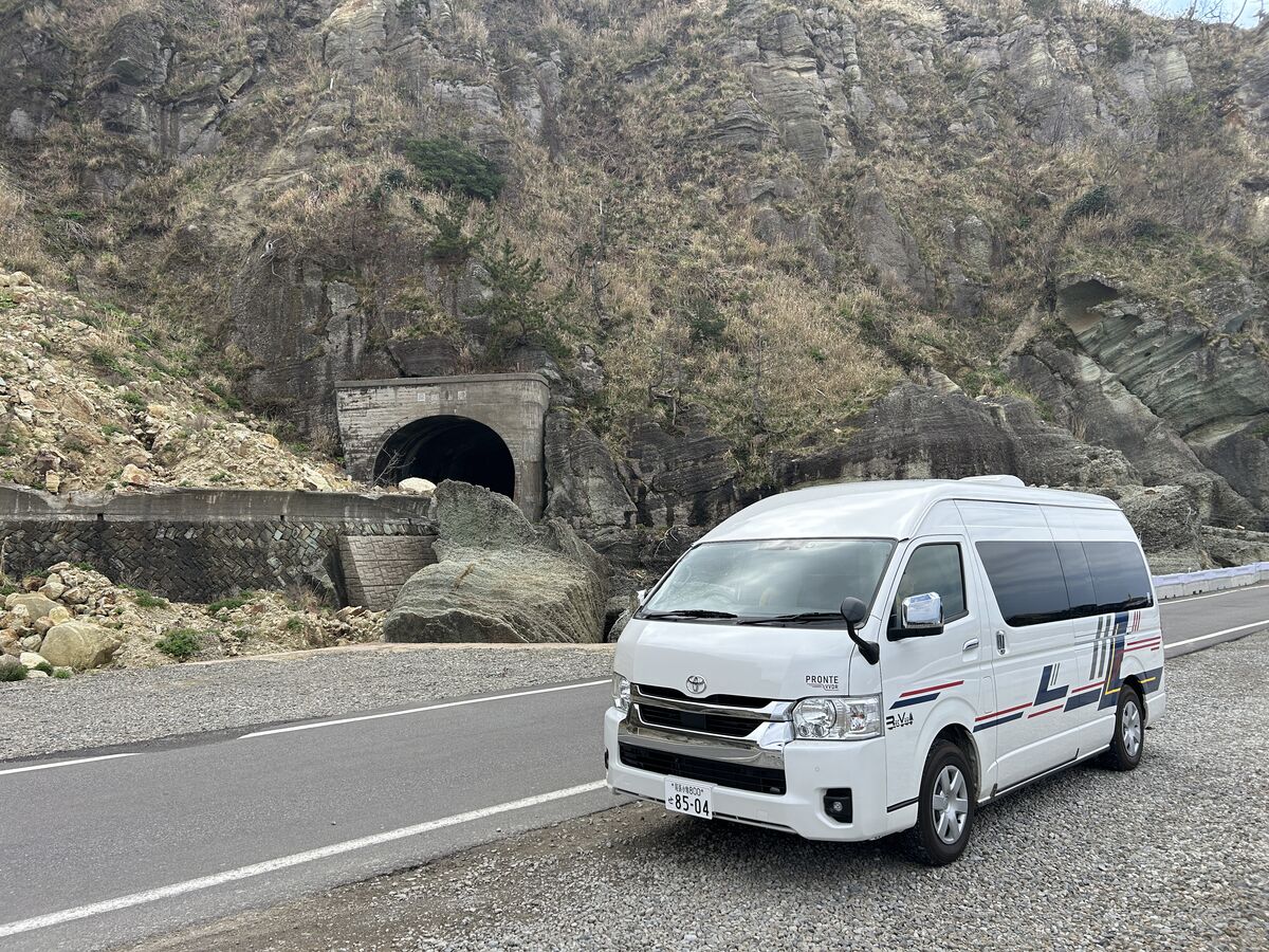山側には潰れてしまったのか、従前の道路トンネルは岩石で覆われたままだった。