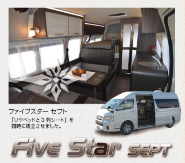 ☆「ファイブスターセプト」3列シートに2段ベッド、防水個室。