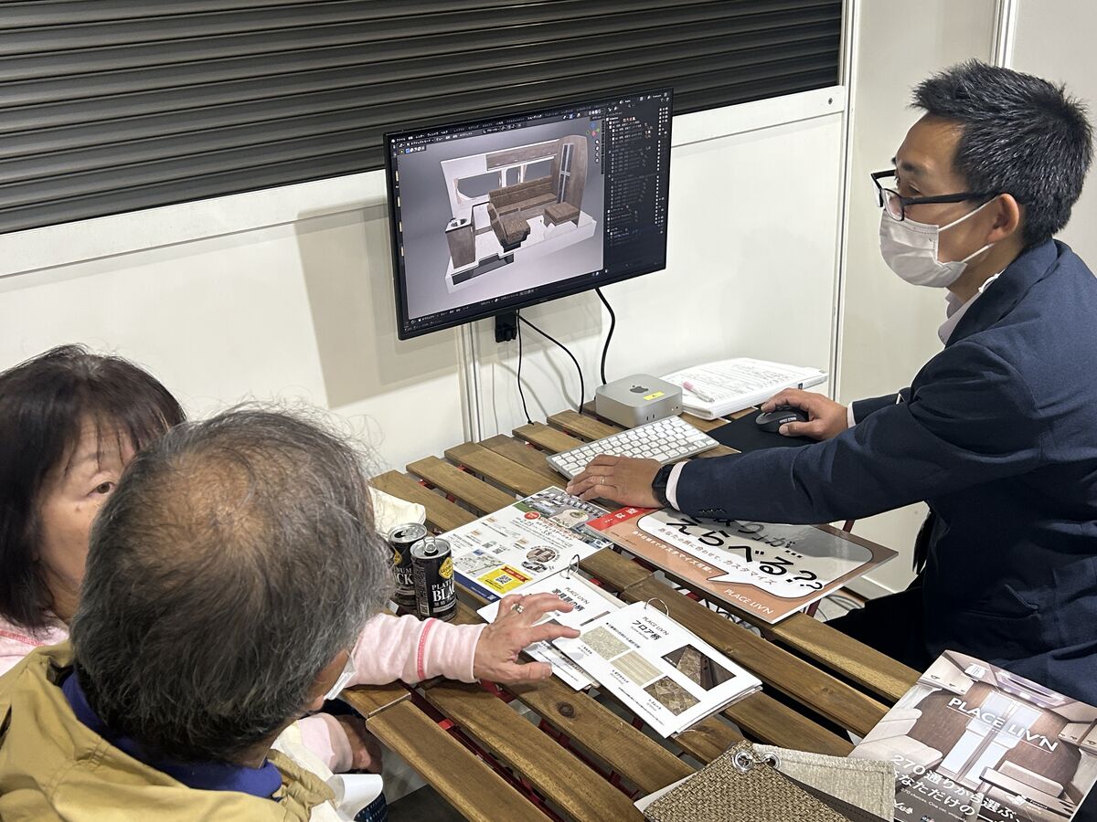 今年のニューフェース「プラス リビン」を前面に押し出したブースにしました。
