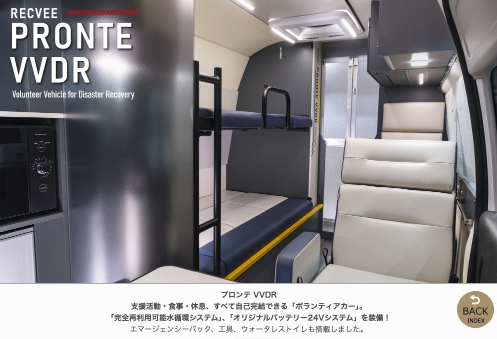 JRVAの防災紹介コーナーでは、レクビィ渾身のリカバリーカー「プロンテ VVDR」の展示もあります。
