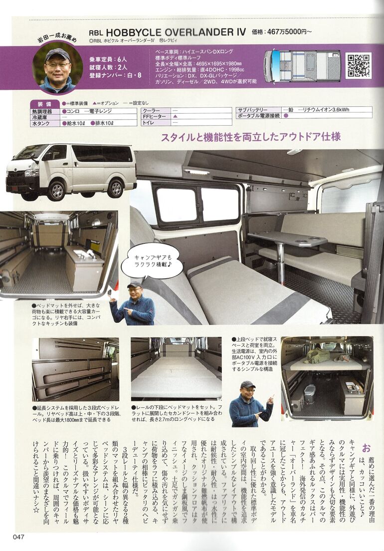 キャンピングカー専門誌「Auto Camper」に、弊社のレクビィ「ホビクルオーバーランダーW」が載りました。