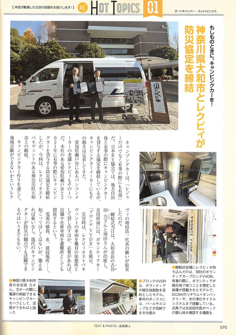 ◆ 神奈川県大和市と『災害時におけるキャンピングカーの貸与に関する協定』を締結 ◆>>詳細はこちらから・・・ ◆ 【ボランティアカー】プロンテVVDR ◆>>スペックなどの詳細はこちらから・・・