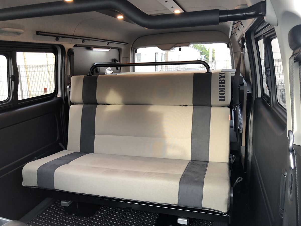 セカンドシートを後ろに向けてリアベッドを「イス風」にアレンジして真ん中にテーブルを展開すればリアダイネットになります。