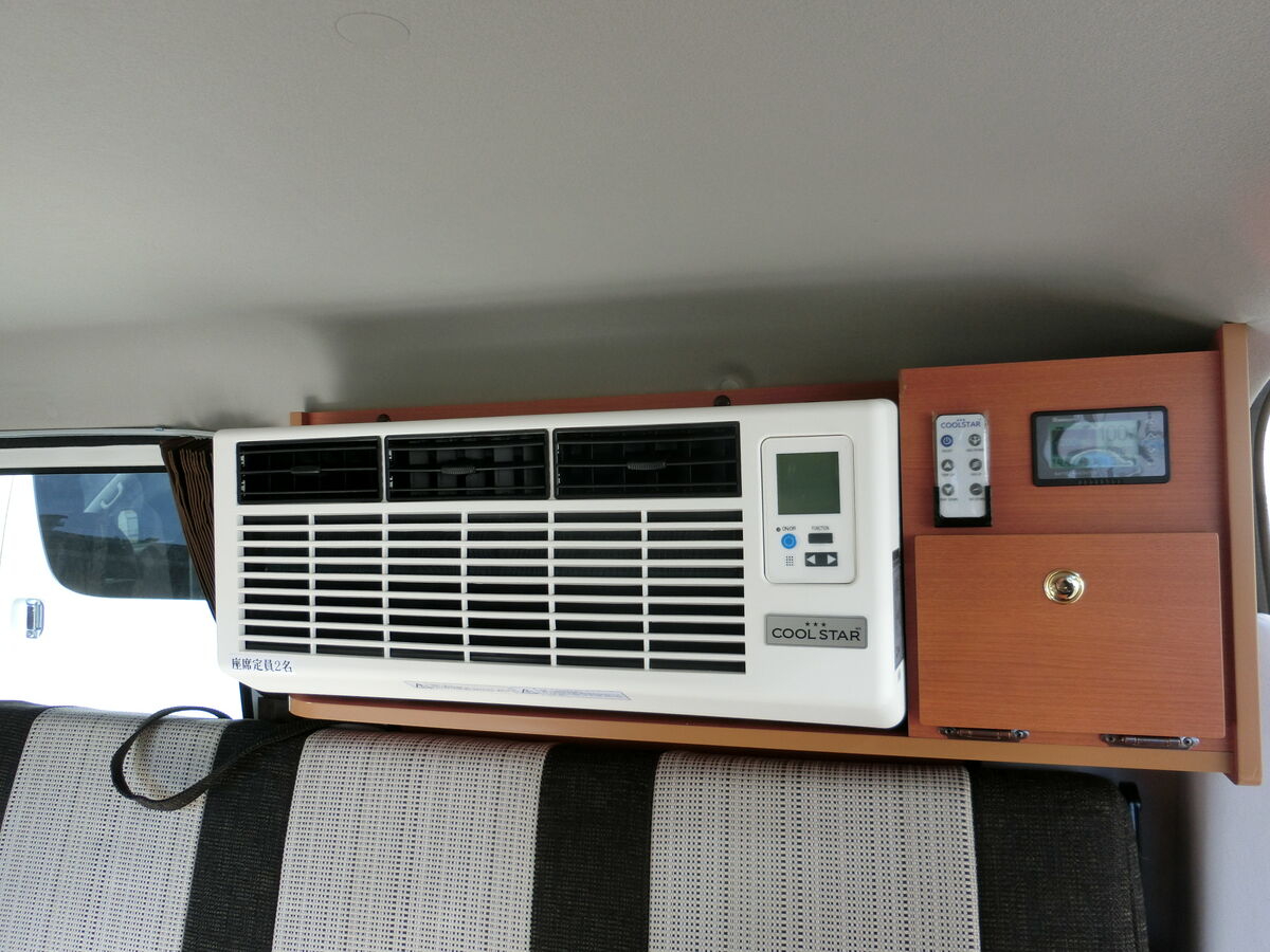 クールパッケージは12Vエアコン&リチウムイオン200Ahで一年中快適な旅が可能です。