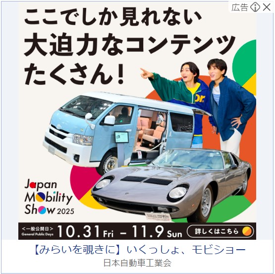 今、『ジャパンモビリティーショー2025(旧東京モーターショー)』が開催中です。