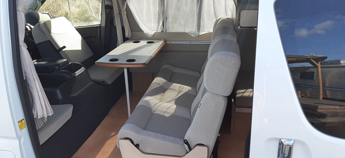 運転席・助手席を倒せばダイネットマットでセカンドシートと向かい合わせでテーブルを使用することができます。