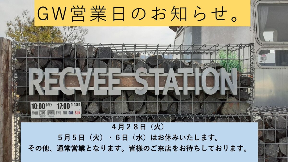 レクビィステーションはGW期間、下記の日程でお休みをいただきます。