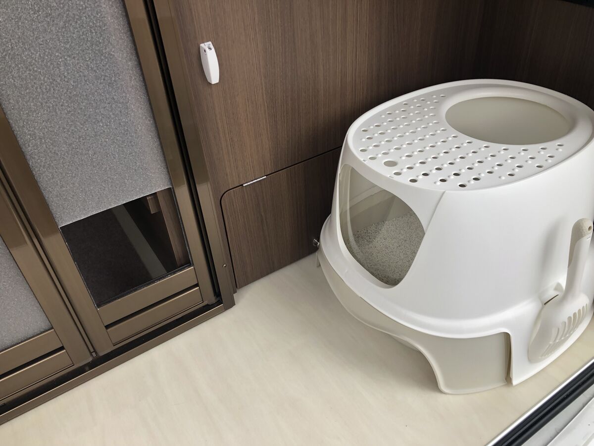 A:後部フリールームが扉で仕切られているので、猫のトイレが置いておける