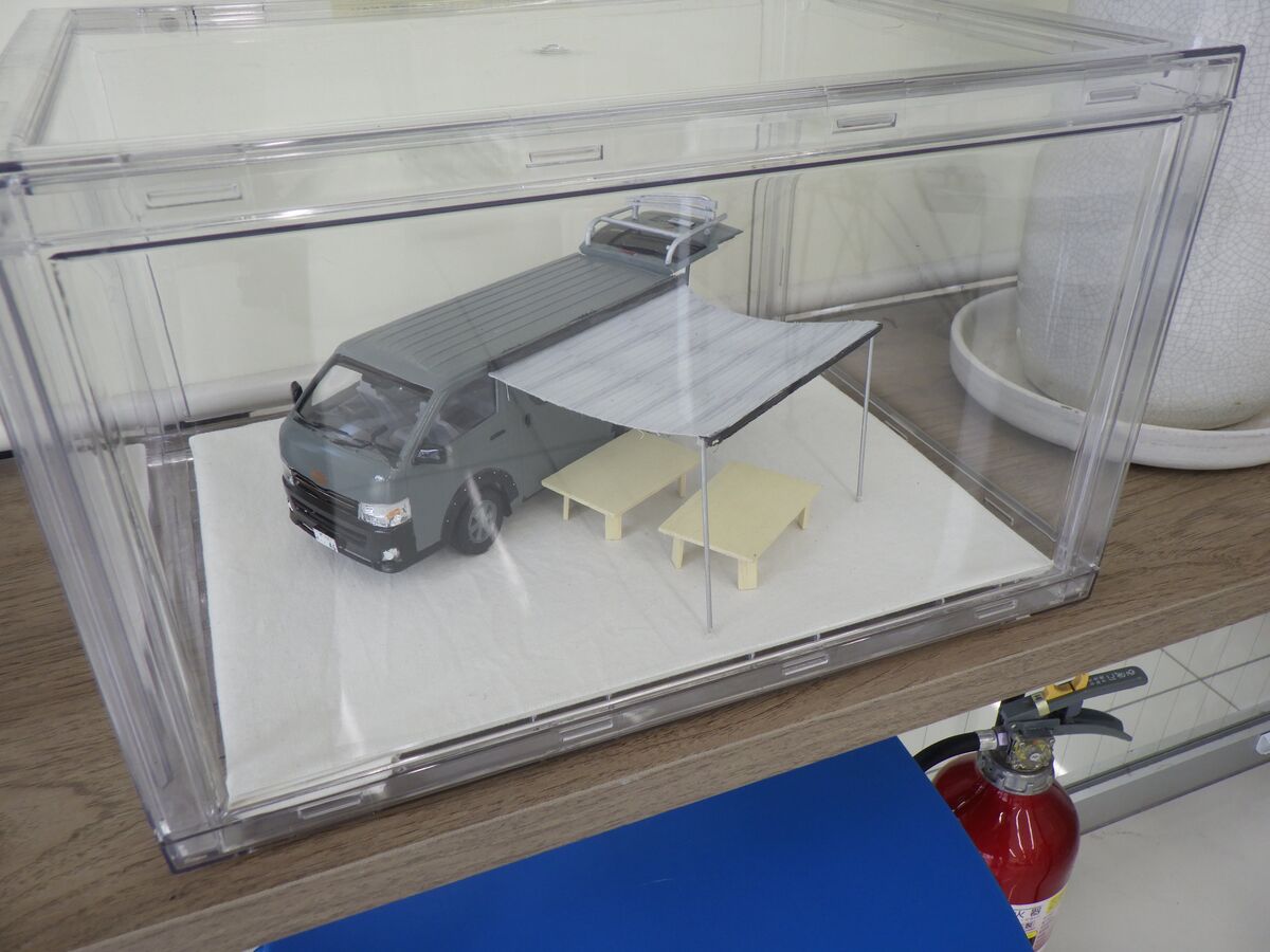 実はオスト店の商談室に飾ってあるハイエースのプラモデルですが、K様からいただいた作品なんです。